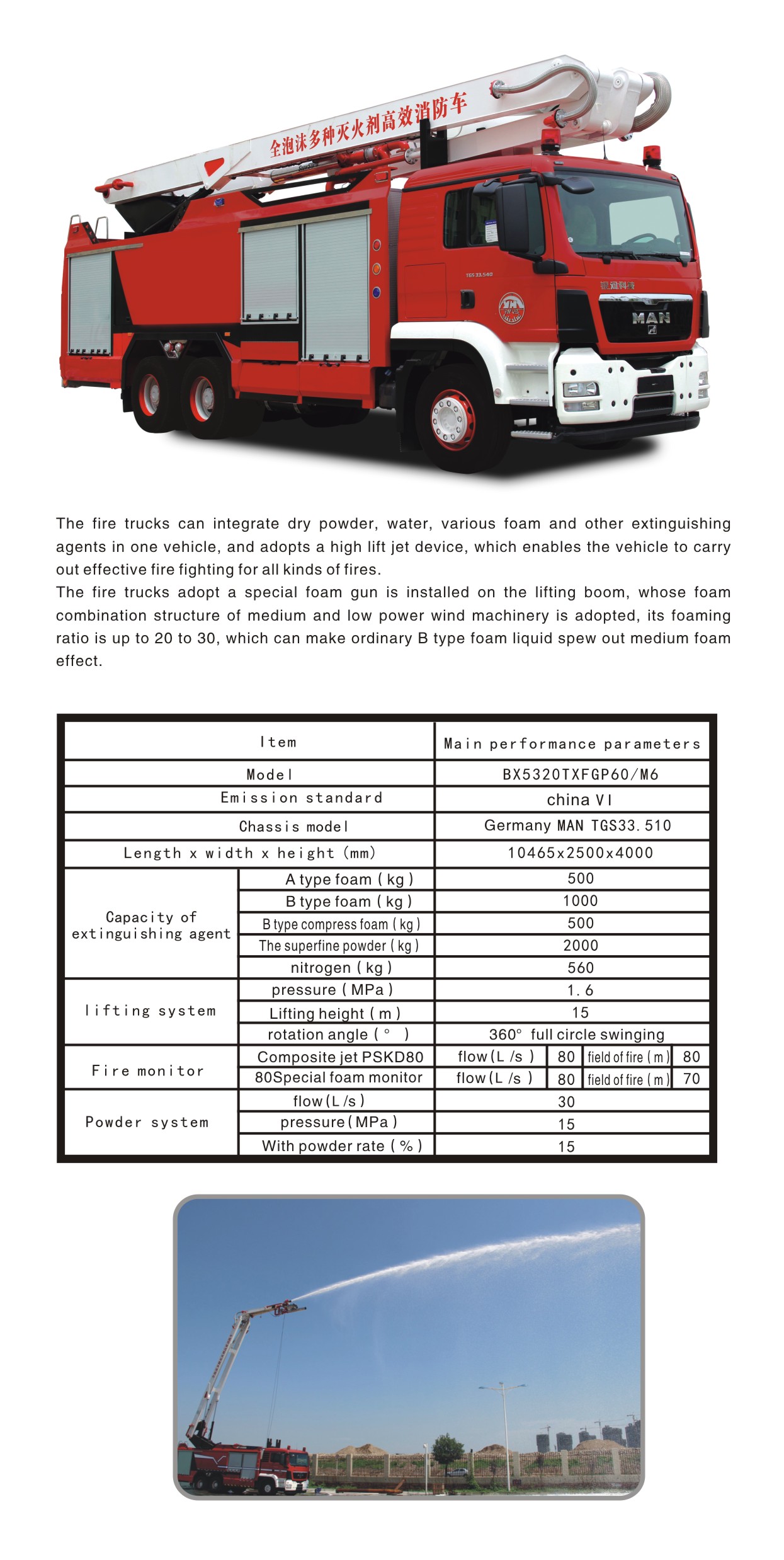 BX5320TXFGP60/M6 Full foam multiple fire extinguishing agent to lift high spray fire truck